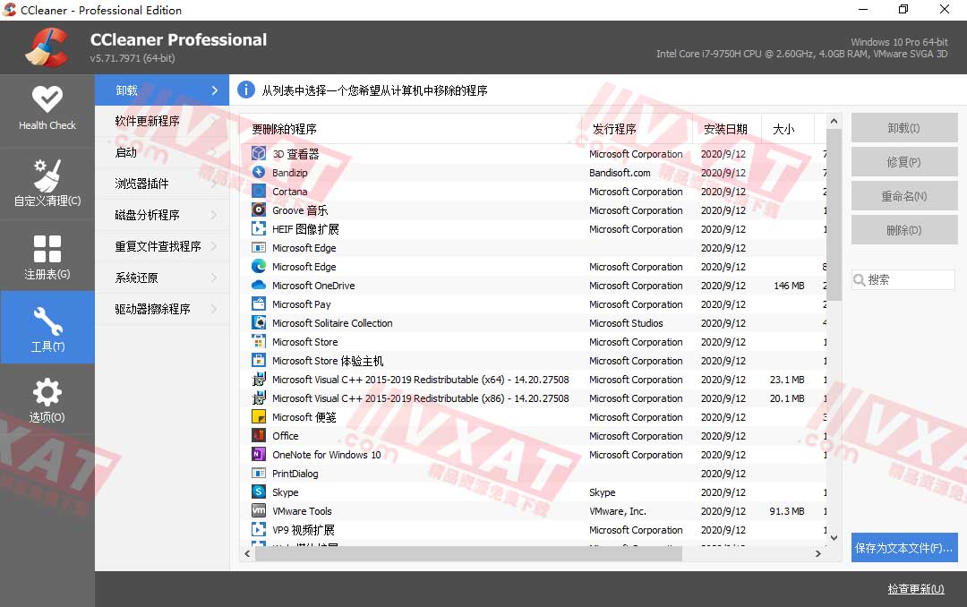 CCleaner是一款免费的系统优化和隐私保护工具。CCleaner的主要用来清除Windows系统不再使用的垃圾文件,以腾出更多硬盘空间。它的 另一大功能是清除使用者的上网记录。CCleaner的体积小,运行速度极快,可以对临时文件夹、历史记录、回收站等进行垃圾清理,并可对注册表进行垃圾 项扫描、清理。附带强大的软件卸载功能。